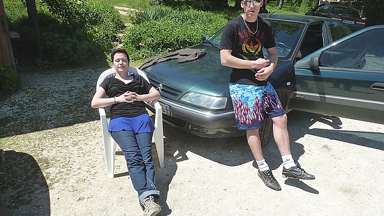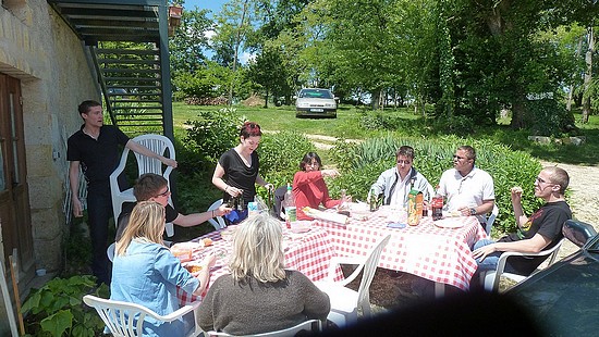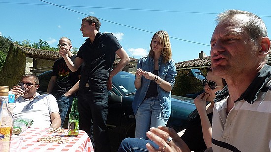 coups de 6 -7h00 du matin. Erick et sa femme puis Stéphane D'autres ont préféré dormir jusqu'à ... 10h30. Petit déjeuner assez copieux puis vînt le moment quand même de parler un peu mécanique... en attendant l'heure de l'apéro. Commençons par Olivee à la recherche d'un petit défaut puis les jeunes préfèrent le vélo à la Xantia |